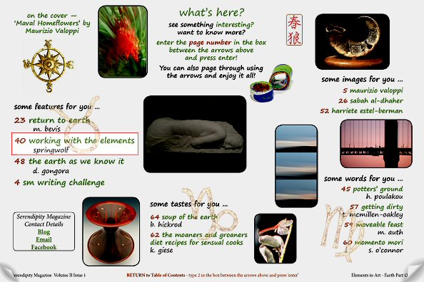 Serendipity Magazine has issued an early release of their next issue featuring articles for Elements In Art. Explore with us how the element Earth has influenced these artists to create and express themselves. This is Part One of a Two-Part issue.