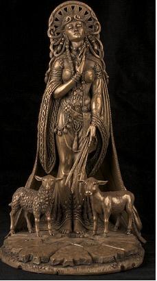 Brighid¹, is said to have been born on the threshold of a her house, at dawn. Quickly after her birth she began suckling on the milk of a supernatural cow from the Celtic Otherworld. The cow later became her totem.