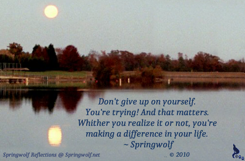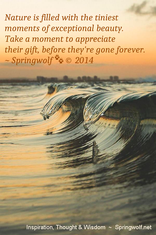 From time to time Spring shares her insights through a simple phrase that can inspire, raise curiosity, cause us to think about what we’re doing and what we’re showing to the world. Here on Springwolf Reflection’s we have shared some of those quotes in the sidebar as a reminder to be Mindful of your thoughts and actions.