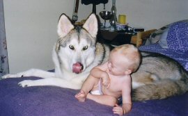 From the moment we first brought him home from the hospital, Merlin loved and protected our baby. But this isn’t always the case and it’s very important for people to think about the temperament of the wolf BEFORE they introduce them to young children! Not only for the children, but for the adults as well.